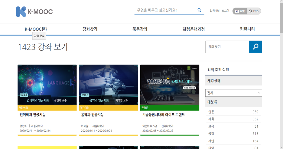 k-mooc 홈페이지에서 흥미롭거나 관심 있는 강좌를 수강해보세요!