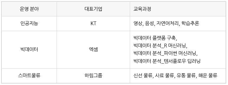 현재 매치업 강좌의 운영분야는 총 5개로 인공지능, 빅데이터, 스마트물류, 스마트팜, 신에너지자동차로 나뉘어 있습니다. 또한 향후 ‘블록체인’ 분야를 수강할 수 있게 준비하고 있습니다. 이러한 매치업 강좌는 참여기관에 따라 교육과정을 달리하는데요, 자신이 흥미를 가진 4차 산업 분야에 따라 원하는 강좌를 수강할 수 있습니다.