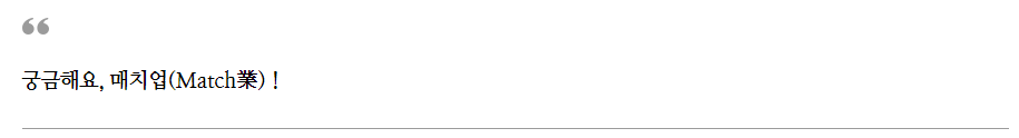 여러분은 매치업(Match業)에 대해 들어보셨나요?