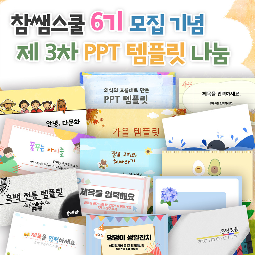<참쌤스쿨> 블로그에 들어가시면 자투리 교육자료, 페이퍼 크래프트, 라벨지, 방학 계획서, 카드, ppt 템플릿 등 다양한 교육자료를 참고 및 이용할 수 있습니다.