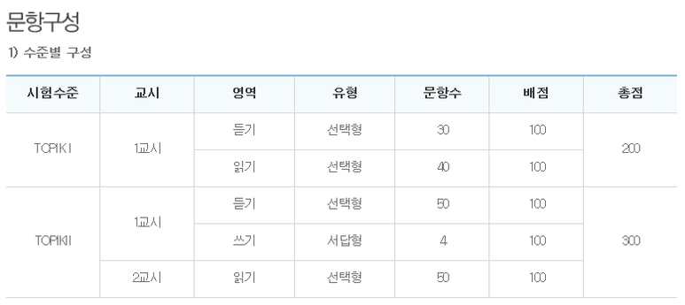 TOPIK1은 '듣기와 읽기', TOPIK2는 '듣기, 쓰기, 읽기' 유형으로 시행됩니다.