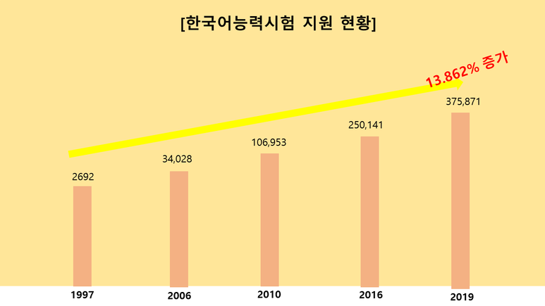실제로 한국어에 대한 인기는 한국어 능력시험(Topik)에서 입증할 수 있다고 합니다.