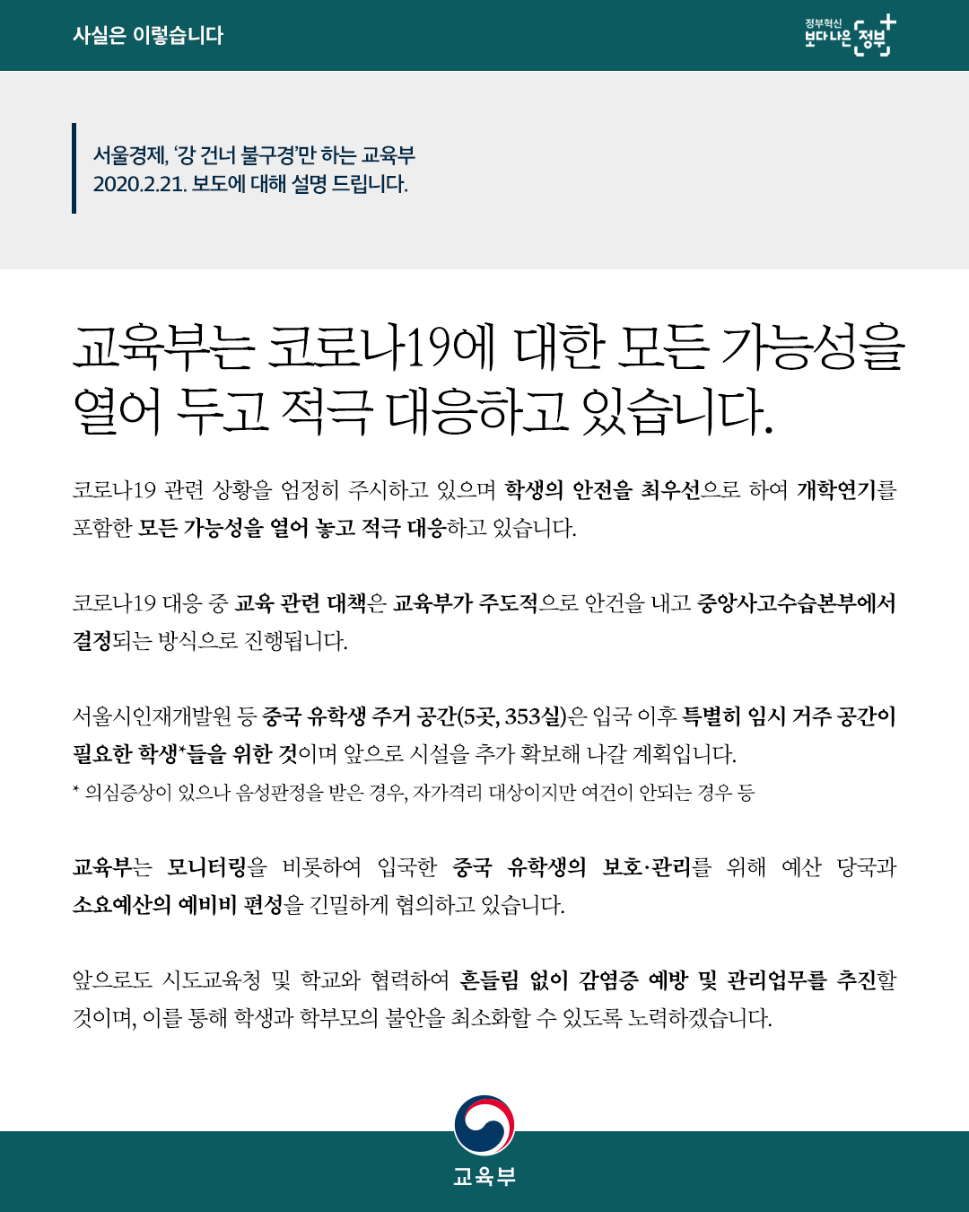 학생의 안전을 최우선으로 하여 개학연기 등 모든 가능성을 열어 두고 대응하고 있으며,