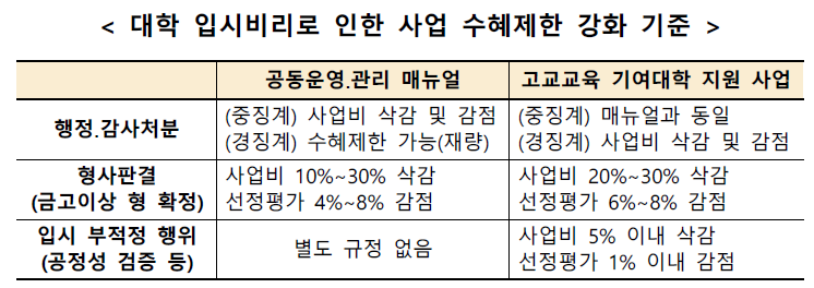 대학 입시비리로 인한 사업 수혜제한 강화 기준
