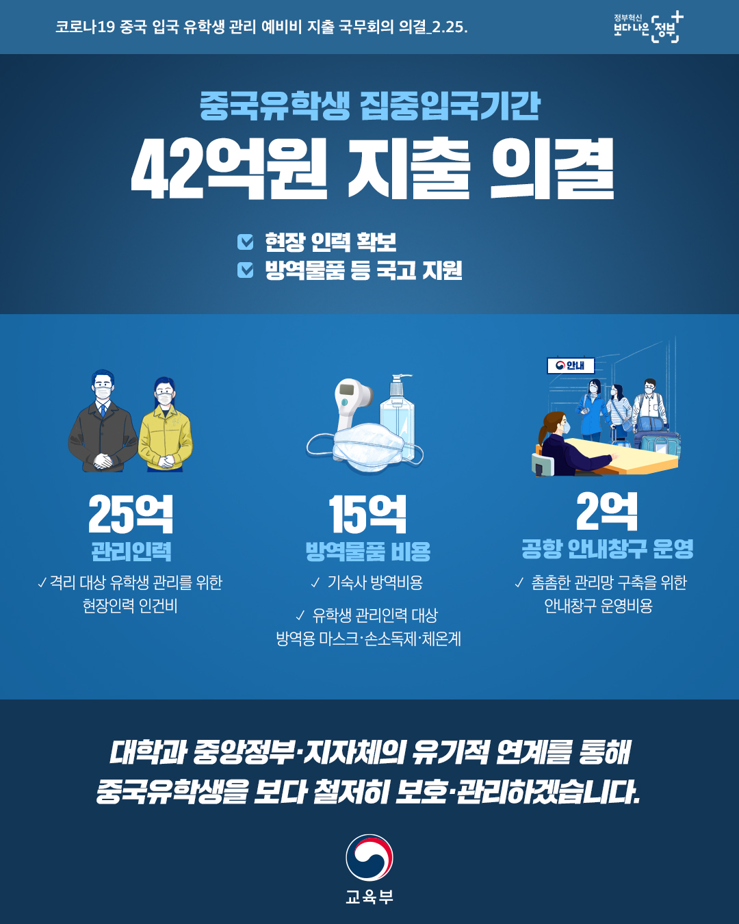 [코로나19 관련 중국 입국 유학생 관리 42억 지출 의결 ] 본문