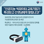 “인공지능․빅데이터 교육기회가 특성화고 선생님에게 열립니다!” - 3D프린팅, 정보기술 등 4차 산업분야 연수와 가상훈련(VR) 콘텐츠 등 제공 - - 특성화고‧마이스터고 전문교과 교사 전문성 강화를 위한 기술연수 확대 (550명 →2,000명) - 교육부와 고용노동부는 특성화고‧마이스터고 실습교육 강화와 4차 산업혁명 기술변화에 맞춘 기술교육 고도화를 위해 전문교과 교사 대상 기술연수를 확대 개편합니다. 이에 따라 기존 한국기술교육대학교에서 진행되던 특성화고․마이스터고 전문교과 교사 대상 현장직무연수 인원을 대폭 확대*하며, 스마트제조, 사물인터넷(IoT) 등 ‘4차 산업분야’ 과정을 포함한 전문교과 교사 대상 첨단신산업 관련 기술연수를 신설**해요. *2020년까지 전문교과 교사 연수 인원을 총인원의..