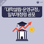 「대학설립․운영규정」일부개정령 공포 ) --> 교육부는 학교법인의 수익용 기본재산에 대한 수익률 기준을 변경하는 내용의 「대학설립․운영 규정」이 4월 11일 공포되어 시행된다고 밝혔습니다. ) --> 이번에 시행되는「대학설립․운영 규정」은 학교법인이 확보하여야 하는 수익용 기본재산의 연간 수익률을 고정적 비율 ‘3.5%이상’에서 ‘전년도 예금은행 저축성 수신 금리 평균 이상’의 유동적 비율로 변경하는 것으로, 학교법인이 경기변화 및 금리 변동에 대응할 수 있도록 기준을 현실화한 것인데요. ) --> 또한, 그동안 구분 운영되던 3개의 설립심사위원회*를 행정의 효율화를 위하여 단일 ‘대학설립심사위원회’로 통합·운영하는 내용도 담고 있으며, 기구 통합으로 인한 전문성 강화를 위하여 위원 수를 9명에서 13명..