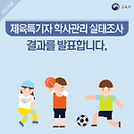 체육특기자 학사관리 실태조사결과를 발표합니다. 교육부는 2017년 3월 30일(목) 정○○(○○대), 장○○(△△대) 등으로 촉발된 체육특기자의 부실한 학사관리에 대한 실태 조사 결과를 발표했습니다.이번 조사는 ’16.12.26.부터 ’17.2.23.까지 체육특기생 재학생 100명 이상인 17개 대학에 대해 현장조사를 통해 학사관리 부실 사례를 다수 확인하였는데요. 체육특기자 재학생 100명 미만 대학은 자체 점검 및 서면보고를 실시하였으며, 자체 점검 및 서면보고 결과의 적정성은 추후 종합 감사 등에서 확인할 예정입니다. 교육부는 이번 실태 조사 결과에 따라 위반의 정도가 심한 사례는 법령에 따라 엄정히 처분하고, 과거의 부득이한 관행의 경우는 제도개선에 중점을 두어 조치할 계획임을 밝혔는데요. 체육특..