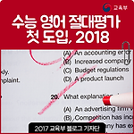 수능 영어 절대평가 : 첫 도입, 2018 2018학년도부터 새롭게 도입되는 수능 영어 절대평가에 대해 들어보셨나요? 여기서 ‘절대평가’란 본인의 성취 수준에 따라 등급이 결정되는 평가제도입니다. 전에 시행되던 다른 학생들과의 성적과 비교되어 등급이 결정되는 기존의 상대평가와는 정 반대죠. (출처 : 네이버 카페 ‘공부엔진’)전엔 위와 같이 상대평가제도로 수능(대학수학능력시험)의 모든 과목이 적용되어 성적이 결정되었었지만 2018학년도 수능부터는 모든 과목 중 영어만 아래와 같이 절대평가로 적용되어 성적이 결정된다고 합니다. (출처 : 한국교육과정평가원) 이렇게 상대평가와 절대평가만을 놓고 비교해보았을 때, 대부분의 학생들은 절대평가제도를 더 선호할 것입니다. 예를 들자면, 절대평가로 시행되는 영어 ..