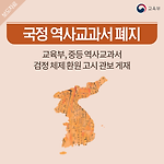 국정 역사교과서 폐지 - 교육부, 중등 역사교과서 검정 체제 환원 고시 관보 게재 - 교육부는 2017년 5월 31일(수), 중・고등학교 역사교과서 발행체제를 국정・검정 혼용에서 검정체제로 전환하는 고시 개정을 완료하여 국정 역사교과서 폐지 절차를 마무리했습니다. 중학교 역사, 고등학교 한국사는 검정교과서만 사용하도록 규정한 「중・고등학교 교과용도서 구분 재수정 고시」가 5월 31일자 관보에 게재됨에 따라 국정 역사교과서는 공식 폐지되었습니다. 아울러 교육부는 행정예고 기간(2017.5.16~5.26)에 제출된 의견에 대한 처리결과와 이유를 행정절차법*에 따라 교육부 누리집(홈페이지)에 공표할 예정입니다. 교육부 누리집(www.moe.go.kr)의 정보공개-법령정보-입법・행정예고에서 확인하실 수 있습니다..