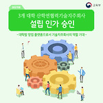 3개 대학 산학연협력기술지주회사 설립 인가 승인 - 대학발 창업 플랫폼으로서 기술지주회사의 역할 기대 - 교육부는 2017년 6월 12일(월) 가톨릭관동대, 대전대, 한국교통대 산학연협력기술지주회사(이하 “대학 기술지주회사”) 설립을 인가했습니다. 산학연협력기술지주회사란? 대학 기술이전·사업화 전담조직으로 대학(산학협력단)의 현금, 현물(기술, 특허 등) 출자를 통해 설립되며, 기술이전 및 자회사 설립·운영 등을 통한 영리활동 수행합니다. 이번에 신규 설립 인가된 대학들은 개별 대학이 보유하고 있는 기술, 특허 등 연구성과 가운데 강점분야를 중심으로 기술이전 및 기술창업(단독설립, 합작설립, 자회사편입 등)을 추진할 계획입니다. 각 학교의 강점 분야로는 가톨릭관동대 의료 바이오 등, 대전대 한방바이오..