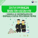 2017년 지역 평생교육 활성화 지원 사업 대상 선정 - 100여개 시‧군‧구에 행복학습센터 운영 및 평생학습도시 조성으로 주민의 평생교육 기회 확대 - 교육부와 국가평생교육진흥원은 2017년 6월 12일 월요일 「2017년 지역 평생교육 활성화 지원 사업」 선정 결과를 발표했습니다. ‘지역 평생교육 활성화 지원 사업’이란 무엇일까요? 바로 모든 국민이 언제, 어디서나 원하는 평생교육을 받을 수 있도록 추진되는 사업인데요! ‘평생교육진흥원(시‧도)-평생학습도시(시‧군‧구)-행복학습센터(읍‧면‧동)’로 이어지는 평생교육 추진체계 구축을 목적으로 지역적 특성 및 평생학습 수요를 반영한 맞춤형 프로그램을 운영하도록 지자체를 직접 지원하는 것입니다. 2017년 지원 대상은 사업별 심사를 통해 선정되었으며..