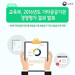 교육부, 2016년도 기타공공기관 경영평가 결과 발표 - 18개 기타공공기관 중 A등급 4개, B등급 11개, C등급 3개 기관 - 교육부는 소관 18개 기타공공기관의 2016년도 경영실적을 평가하고 그 결과를 확정․발표했습니다. 경영평가는 교수․회계사․변호사․노무사 등 민간 전문가(곽채기 동국대 교수 등 21명)로 구성된 경영평가단을 통해 3월부터 5월까지 서면평가와 현장실사로 진행했습니다. 평가는 절대평가로 진행했으며, 평가결과 등급의 분포는 전반적으로 전년도와 비슷한 수준으로, A등급(우수) 4개, B등급(양호) 11개, C등급(보통) 3개 기관으로 나타났습니다. 기타공공기관 경영평가는 기타공공기관(2017년 현재 208개)의 경영개선을 목적으로 「공공기관 정상화 대책」(’13.12.11)에 따라 ..