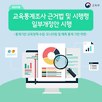 통계기반 교육정책 수립·모니터링 및 예측 통계 기반 마련 - 교육통계조사 근거법 및 시행령 일부개정안 시행 - 교육부는 지난 6월 13일(화) 국무회의에서 「유아교육법 시행령」,「초·중등교육법 시행령」,「고등교육법 시행령」일부개정령안이 의결되어 교육통계조사 근거법* 및 각 법 시행령이 6월 22일(목)부터 시행한다고 밝혔습니다. * 「교육기본법」제26조의3,「유아교육법」제6조의2,「초·중등교육법」제11조의2,「고등교육법」제11조의3 (’17.3.21. 공포, ’17.6.22. 시행) 이번 시행령 개정은 교육통계조사 근거법 개정의 후속 조치로 교육기본통계조사*를 보다 안정적·효율적으로 운영하기 위해 교육통계조사의 대상과 내용, 절차 및 결과 공개 등에 관한 사항을 구체적으로 규정하고 관련 조문을 정비하는 ..