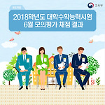 2018학년도 대학수학능력시험 6월 모의평가 채점 결과 한국교육과정평가원은 지난 6월 1일(목) 전국적으로 실시된 2018학년도 대학수학능력시험(이하 수능) 6월 모의평가 채점 결과를 6월 22일(목)에 수험생들에게 통지했습니다. 개인별 성적통지표는 접수한 곳(재학 중인 학교, 시험 지구 교육청, 출신 학교 등)을 통하여 수험생에게 교부했습니다. 아울러 수험생 진학 지도를 위해 「영역/과목별 등급 구분 표준점수 및 도수분포」자료도 공개했습니다. 2018학년도 수능 6월 모의평가에 응시한 수험생은 522,582명으로 재학생은 455,216명, 졸업생은 67,366명이었습니다. 이 중 국어 영역 520,794명, 수학 가형 198,097명, 수학 나형 316,419명, 영어 영역 521,938명, 한국사 영..