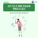 2017년 초‧중등 진로교육 현황조사 실시 - 창업 및 기업가정신 함양 교육 실태 파악 - 교육부는 「2017년 초·중등 진로교육 현황조사」를 6월 28일부터 7월 21일까지 전국의 1,200개 학교를 대상으로 실시합니다. 이 조사는 진로교육법에 따라 초·중등학교의 진로교육 관련 인력·시설, 프로그램 운영 및 인식 등을 파악하는 조사로서, 2007년부터 매년 조사하고 있습니다.(2007년 최초 조사 실시, 2015년부터 통계청 승인 ‘지정통계’ 조사) 올해 조사는 학생들의 창의적 진로설계 역량 강화 및 창업문화 확산을 위해 ‘창업 및 기업가정신 함양 교육’ 현황이 처음으로 포함됩니다. 조사결과는 초중등 진로교육 정책 수립 및 관련 연구 등에 활용되며, 올 12월에 발표할 예정입니다. 조사대상은 초중고 1..