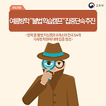 여름방학 “불법 학습캠프” 집중단속 추진 ◈ 방학 중 불법 의심캠프 8개소와 전국 54개 기숙형 학원에 대해 집중 점검 교육부는 시‧도교육청과 합동으로 여름방학 특수를 이용한 불법 학습캠프 의심업체 8개소와 별도로급식‧소방 등 안전사고 예방을 위해 전국 54개 기숙형 학원에 대해서도 집중점검을 실시합니다. 앞서 교육부는 한국인터넷광고재단과 함께 지난 7월 3일부터 7월 12일까지 온라인 광고 상 불법 학습캠프로 의심되는 업체에 대한 모니터링을 실시하여 8개 업체를 발견하였는데요. 불법이 의심되는 학습캠프는 학원으로 등록되지 않은 기관으로 학생을 모집하거나 학습캠프나 등록된 학원이지만 숙박시설을 단기 대여하여 기숙캠프로 운영하는 형태 등입니다. 아울러, 교육부는 최근 청소년 수련활동을 빙자한 편법적 학습캠..