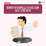 홍콩한국국제학교 이사회 임원 승인 신청 반려 교육부는 학교법인 홍콩한국국제학교 이사회의 임원 승인 신청에 대하여 이사장과 이사(1명)에 대한 임원 승인 신청을 지난 7.14(금) 홍콩총영사관을 통하여 반려하였다고 밝혔습니다. 홍콩한국국제학교는 매년 10억 원 내외의 국고지원금을 받아 운영되고 있으며, 지난 2015년 11월 감사원 감사, 2016년 3월에는 교육부 지도·조사를 받았습니다. 교육부는 이사회가 초·중등교육법에 의한 한국 교육과정을 위하여 지원한 국고지원금을 외국 교육과정을 운영하는 국제과정과 혼용하여 사용하고 있어 교비회계가 불투명하게 관리되고 있음을 지적하고, 두 과정의 회계를 분리하여 재정을 투명하게 관리하고 한국과정에 국고지원금을 사용하도록 지속적으로 요구하였으나, 이사회는 이를 거부하..