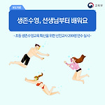 생존수영, 선생님부터 배워요 - 초등 생존수영교육 확산을 위한 선진교사 299명 연수 실시 - 교육부는 초등학교 수영교육 확산을 위해 생존수영 우수 선진교사 299명을 대상으로 7월 19일부터 바다, 강 등에서 생존수영 교원연수를 실시합니다. 이번 생존수영 연수는 지난해 이어 두 번째로 추진되는 연수로써 앞으로 이들은 관내 학교의 수영담당 교사를 대상으로 자체 연수 및 시도교육청별 수영교육 관련 연수 시 강사로 활동하게 되어 생존수영의 저변 확산에 선도적인 역할을 하게 됩니다. 2016년에는 초등교원 377명 연수를 이수했습니다. 한국교육과정평가원 학교체육중앙지원단 주관으로 운영되는 이번 연수는 전문기관인 대한수중협회의 자문․협조와 서울특별시교육청 대천임해교육원 및 한국해양소년단의 지원을 받아 실질적인 ..