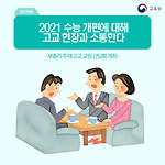 2021 수능 개편에 대해 고교 현장과 소통한다 - 부총리 주재 고교 교원 간담회 개최 - 교육부는 7. 18.(화) 16:00에 정부서울청사 813호 대회의실에서 김상곤 부총리 겸 교육부장관 주재로 2021학년도 수능 개편 방안에 대한 의견청취를 위해 고등학교 교원과의 간담회를 개최했습니다. 간담회에 참여한 고등학교 교원은 총 16명으로 지역 및 고교 유형을 고려하여 교육청 추천 등을 거쳐 무작위 선정했습니다. (교장1명, 교감1명, 교사14명 / 공립12명, 사립4명 / 일반고11명, 자사고2명, 외고1명, 과학고2명) 간담회에 참여한 고교 교원들은 학교교육 정상화를 위해 현장에서 바람직하다고 생각하는 수능 개편방안에 대해 부총리와 직접 소통하는 시간을 가졌습니다. 교육부는 향후에도 학부모, 시민단체..