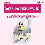 2017년 1차 학교폭력 실태조사 결과 - 피해응답 경험학생 100명 중 1명 미만 - - 현장중심 학교폭력 심층실태 파악을 위한 조사개편 추진 - 교육부는 17개 시․도교육감이 공동으로 전국 초·중·고등학교(초4~고3) 학생을 대상으로 학교폭력 관련 경험·인식 등을 조사한「2017년 1차 학교폭력 실태조사」결과를 7월 11일(화) 발표했습니다. 이번 실태조사는 대상 학생의 94.9%인 419만 명이 참여하였고, 조사 결과 학교폭력 피해응답률이 0.9%(3만7천명)로, 전년 동차 대비 동일(2천명↓)한 것으로 나타나 ’12년 이후 학교폭력 피해응답률이 하향 안정화 추세를 보이는 것으로 나타났습니다. 2017년 1차 학교폭력 실태조사 주요결과 1. 피해 응답현황 ∘ 피해응답률 0.9%(3만7천명)로,전년 ..