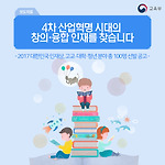 4차 산업혁명 시대의 창의 ‧ 융합 인재를 찾습니다 - 2017 대한민국 인재상, 고교·대학·청년 분야 총 100명 선발 공고 - 교육부와 한국과학창의재단은 2017년도 「대한민국 인재상」 선발 계획을 공고했습니다. 대한민국 인재상은 2001년부터 2007년까지 운영되었던 「21세기를 이끌 우수 인재상」을 확대⋅개편한 것으로, 대한민국을 대표할 창의․융합 인재를 발굴하여 미래 국가의 주축으로 성장하도록 지원하고자 2008년부터 운영되고 있습니다. 대한민국 인재상은 대한민국 국적을 가진 만 15세~ 29세의 청년 중에서 △창의와 열정으로 새로운 가치를 창출하고, △타인을 배려하며, △공동체 발전에 기여하는 인재를 선발합니다. 선발 인원은 고등학생 50명, 대학생 40명, 청년일반인 10명 등 총 100명입..