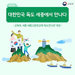 대한민국 독도 세종에서 만나다 - 교육부, 세종 새롬고등학교에‘독도전시관’개관 - 교육부(부총리 겸 교육부장관 김상곤)와 세종특별자치시교육청(교육감 최교진)은 8월 28일(월) 새롬고등학교(교장 윤재국)에서 ‘독도전시관 개관식’을 개최하였습니다. 그간 교육부는 학생 및 시민들에게 독도 영토주권의식 및 독도사랑 확산의 계기를 마련하기 위하여, 2012년부터 독도전시관을 구축‧운영해왔으며, ※ (2012년)서울, (2014년)경남, 충북, 전북, (2015년) 대전, 인천, 경기, 전남, (2016년) 대구, 광주 올해에는 세종특별자치시교육청과 경상북도교육청(9월 말 개관식 개최)에 독도전시관을 구축하였습니다. 세종 독도전시관은 새롬고등학교에서 상설전시관으로 운영되며 학생 및 시민들에게 살아있는 독도교육의 ..
