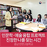 충남 안면고등학교 ‘인문학・예술 융합 프로젝트’ 독서토론-인문예술공연 접목 진정한 나를 찾는 시간 안면고 대표 인문동아리 글빛누리 학생들 충남 태안 안면고등학교는 인문학과 예술을 연계해 인성과 감성을 아우르는 창의적 체험활동을 진행하고 있다. 예술 기반요소가 부족한 농어촌 소규모학교 학생들이 예술적 감성을 키우면서 인문학을 배울 수 있는 기회를 만들어가고 있다. 책사랑 콘테스트 ‘요리조리 시 발상대회’ 작품을 감상하는 학생들 저의 꿈은 영화 마케터입니다. 『달라이라마의 행복론』을 읽고 영화가 저의 행복이라고 생각했기 때문입니다. 돈과 명예처럼 바깥에 있는 행복이 아닌 저의 진정한 행복은 영화로부터 온다는 것을 깨달았습니다. 충남 태안 안면고등학교(교장 김형근) 2학년 나하영 양의 ‘꿈 노트’에는 ‘나..