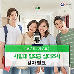 사립대 입학금 실태조사 결과 발표 교육부(부총리 겸 교육부장관 김상곤)가 사립대학 입학금의 단계적인 감축을 추진하기 위하여 지난 9월 실시한 「사립대 입학금 실태 조사」 결과를 발표하였습니다! 이번 조사는 사립대 입학 실소요 비용을 분석하기 위한 것으로 전국 4년제 사립대(156개교) 중 80개교가 조사에 참여하였는데요. 그 결과를 먼저 살펴볼까요? 입학금의 5%는 입학식, 신입생 오리엔테이션 등 행사비로 사용되었으며, 8.7%는 신입생 진로‧적성검사, 적응프로그램 등 학생지원경비로 사용되었습니다. 입학금의 14.3%는 홍보비로, 20.0%는 신‧편입생 장학금 등으로 사용하였으며, 14.2%는 입학관련부서 운영비로 사용하였고, 33.4%는 일반운영비에 포함하여 사용하고 있는 것으로 집계되었습니다. 아래 ..