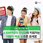6,100여명의 학생들이 키워가는 더불어 예술 숲으로 오세요- 제7회 전국 학교예술교육페스티벌 개최 - 교육부와 서울특별시교육청이 “우리들이 키워가는 더불어 예술 숲”이라는 주제로 10월 17일(화)부터 19일(목)까지 3일간 서울 올림픽공원에서 「제7회 전국 학교예술교육페스티벌」을 개최합니다! 제7회 전국 학교예술교육페스티벌 ❖ 일 정 : 2017.10.17.(화) ∼ 10.19.(목) * 개막식 : 13:30~14:30(60분)❖ 장 소 : 서울 올림픽공원 올림픽홀, 우리금융아트홀, K-아트홀, 뮤즈라이브, 백호다리 인근❖ 주최 및 주관 : 교육부 / 서울특별시교육청 전국 학교예술교육페스티벌은 2011년에 학생 오케스트라를 운영하는 19교를 대상으로 개최했던 페스티벌이 확대·발전한 것으로, 현재는 약..