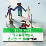 한국 유학 박람회, 온라인으로 참여하세요!- 2017 사이버 한국유학박람회(하반기) 개최 - 교육부와 국립국제교육원이 2017년 10월 18일(수)부터 31일(화)까지 「2017년 사이버 한국유학박람회(하반기)」를 개최합니다! 사이버 한국유학박람회는 오프라인 유학박람회가 개최되지 않은 국가나 지역에 한국 유학 및 고등교육기관을 홍보하기 위하여 2015년부터 개최하고 있으며, 이번 박람회는 지난 7월에 이어 올해 두 번째로 열리는데요. 이번 박람회에는 서강대학교 등 47개 국내대학이 참여하며, 150여 개 국가의 외국인 학생이 참여할 것으로 기대됩니다. ※ 출신국가별 참가인원 상위 10개국(총 154개국, 17,443명 참가) 박람회는 한국 유학에 관심 있는 외국인 또는 재외국민 누구나 참여할 수 있으며,..