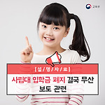 사립대 입학금 폐지 결국 무산 보도 관련 설명 오늘, ‘“등록금 올려달라” 요구, 입학금 폐지 무산’이라는 제목의 기사가 중앙·한국·서울일보 등 매체를 통해 보도됐습니다. / 관련 보도 내용 해당 기사는 정부와 사립대학총장협의회 간 입학금 폐지 관련 최종 합의가 무산됐으며, 사립대 입학금 폐지는 없던 일로 될 듯하다는 내용이었습니다. / 설명 내용 이에 대한 교육부의 설명은 다음과 같습니다. 대학 입학금 폐지 무산은 사실과 다르며, 단계적 폐지 입장 변화 없어 - 교육부, 재정 지원 인센티브 및 법령 개정으로 제도적인 개선책 마련 교육부는 지난 금요일(2017.10.20) 협의에서 사립대학 측이 입학금을 폐지하는 대신에 등록금 인상을 주장하여 그 동안의 협의가 결렬되었다고 밝혔습니다. 교육부는 협의의 ..