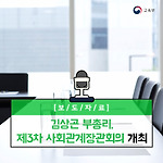 김상곤 부총리, 제3차 사회관계장관회의 개최 “초·중등학교부터 창업교육 기반 조성,4차 산업혁명 시대 창업국가 조성을 위한 밑거름 될 것” “초등학교 주변 위해요인 근절을 위해 범부처가 뜻 모아” “「온종일 돌봄」, 「청소년 폭력 예방대책」 추진 상황 점검,차질 없는 대책 마련 지원할 것 ” 김상곤 부총리 겸 교육부장관은 10.27.(금) 오전 정부서울청사에서 제3차 사회관계장관회의를 개최하여, 「4차 산업혁명 시대 기업가정신 함양을 위한 학생 창업교육 활성화 방안」을 심의하고「개학기 초등학교 주변 위해요인 안전점검․단속 결과」와「‘온종일 돌봄체계 구축’ 및 ‘학교 안팎 청소년 폭력 예방대책 수립’ 추진상황 및 범부처 협조사항」을 보고받습니다! 먼저, 「4차 산업혁명 시대 기업가정신 함양을 위한 학생 창..