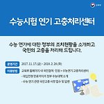 [알림] 수능 시험 연기 고충처리센터 운영(~2.28.) 교육부는 수능 연기에 대한 정부의 조치현황을 안내하고 수험생, 학부모의 고충을 신속하게 해결하는 '수능시험 연기 고충처리센터'를 운영합니다. #수능연기후속대책 #고충처리센터 #정부조치현황 #신속해결 ▶수능시험 연기 고충처리센터 바로가기 >> goo.gl/Egji9M