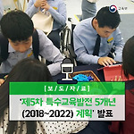 ‘제5차 특수교육발전 5개년(2018~2022) 계획’ 발표 - 2022년까지 특수학교 22교 이상(특수학급 1,250학급) 신설 및 특수교사 확충 - - 통합교육 내실화 위해 장애유형별 거점지원센터와 치료지원전담팀 운영 - - 국가 장애인 평생교육 지원체제 구축 및 교육부 특수교육 전담조직 확대 - 교육부는 12월 4일(월) 생애단계별 맞춤형 교육으로 특수교육대상자의 성공적인 사회통합 실현을 위한 ‘제5차 특수교육발전 5개년(2018~2022) 계획’을 발표하였습니다! 이번 계획은 “모든 아이는 우리 모두의 아이”라는 교육분야 국정기조를 토대로 특수교육대상자의 균등하고 공정한 교육을 보장하기 위한 새로운 5개년의 특수교육발전 방향을 제시한 것인데요. 지난 제4차 계획 동안 유·초·중·고 과정 의무교육과..