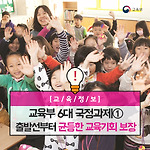 교육부 6대 국정과제 ① 출발선부터 균등한 교육기회 보장 문재인정부는 유아기 출발선부터 대학까지 보육과 교육에 대한 국가의 책무성을 강화하고 생애주기별 맞춤형 지원 실현이 필요하다고 봤다. 이러한 국정운영 방향이 담긴 「국정운영 5개년 개획」에는 교육혁신을 이룰 6대 국정과제를 제시하고 있다. 문재인정부 100대 국정과제 가운데 교육 분야 6대 실천과제를 3회에 걸쳐 시리즈로 소개합니다. 국정과제1. 유아에서 대학까지 교육의 공공성 강화 국정과제2. 교실 혁명을 통한 공교육 혁신 국정과제3. 교육의 희망사다리 복원 국정과제4. 고등교육의 질 제고 및 평생·직업교육 혁신 국정과제5. 미래 교육 환경조성 및 안전한 학교 구현 국정과제6. 교육 민주주의 회복 및 교육자치 강화 ### ▶ 국정과제1. 유아에서 ..