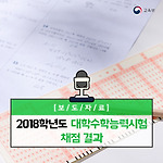 2018학년도 대학수학능력시험 채점 결과 한국교육과정평가원은 지난 11월 23일(목) 전국적으로 실시된 2018학년도 대학수학능력시험(이하 수능) 채점 결과를 12월 12일(화)에 수험생들에게 통지하였습니다. 개인별 성적통지표는 접수한 곳(재학 중인 학교, 시험 지구 교육청, 출신 학교 등)을 통하여 수험생에게 교부하였는데요. 아울러 수험생 진학 지도를 위해 「영역/과목별 등급 구분 표준점수 및 도수분포」자료도 공개하였습니다. 2018학년도 수능에 응시한 수험생은 531,327명으로 재학생은 398,838명, 졸업생은 132,489명이었습니다. 국어 영역 530,093명, 수학 가형 173,155명, 수학 나형 335,983명, 영어 영역 528,064명, 한국사 영역 531,327명, 사회탐구 영역 2..