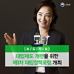 대입제도 개편을 위한 제1차 대입정책포럼 개최 - 향후 대입정책포럼 및 전문가 자문단 운영을 통해 대입제도 개편안(시안) 마련 - - 개편안에 대한 의견수렴 및 국가교육회의 공론화를 거쳐 새 정부 대입제도 개편방안 확정 계획 - 교육부는 대입제도 개편안 마련을 위한 제1차 대입정책포럼을 12월 12일 18시 서울교대 종합문화관에서 개최합니다! 교육부는 지난 8월, 2021학년도 수능 개편 과정에서 ‘새 정부의 교육철학을 담은 종합적인 대입제도 개편안을 2018년 8월까지 마련하겠다.’고 하면서 ‘특히 향후 대입정책포럼 등을 통해 충분한 소통과 공론화 과정을 거치겠다.’고 밝힌 바 있는데요. 제1차 대입정책포럼은 ‘함께 만들어가는 대입제도 개편’이라는 취지에서, 고교, 대학, 학부모·시민 단체 등 다양한 ..