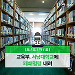 교육부, 서남대학교에 폐쇄명령 내려 - 2018학년도 신입생 모집 정지 및 재적생 특별편입학 추진 - 교육부는 2017년 12월 13일(수) 서남대학교(이하 서남대)에 대해 청문 절차 등을 거쳐 고등교육법 제60조 및 제62조에 따라 2018학년도 학생 모집 정지와 동시에 대학 폐쇄명령(폐쇄일 2018.2.28)을 하였다고 밝혔습니다! 학교법인 서남학원에 대해서는 서남대 외에 더 이상 설치․경영하는 학교가 없어 목적달성이 불가능함에 따라 법인 해산 명령(해산일 : 2018.2.28.)도 함께 하였는데요. 교육부는 서남대가 지난 2015년 대학구조개혁 평가에서 최하위 등급인 ‘E등급’을 받은 후 타 대학과 달리 학교정상화를 위한 후속 상시컨설팅을 실시하고 지속적인 자구노력의 기회를 부여했습니다. 상시컨설팅..