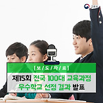 제15회 전국 100대 교육과정 우수학교 선정 결과 발표 - 수업혁신, 교사역량 강화, 학생 중심 학교 문화 개선으로 달라진 학교 이야기 - 교육부는 12월 15일(금)에 「제15회 전국 100대 교육과정 우수학교 선정」 결과를 발표하였습니다! ‘교육과정 우수학교 선정’(2003년에 시작하여 2004년부터 2011년까지 전 학교로 확대 시행되었으며, 2010년부터 100대 우수학교로 지정하여 시상함)은 국가 교육과정을 바탕으로 학교 교육과정을 혁신적으로 개선하고 특색 있게 운영한 우수사례를 발굴하는 사업으로, 지난 2003년부터 교육과정 중심으로 학교문화를 개선하여 학교교육을 내실화하는 등 공교육의 신뢰도를 높이는데 큰 역할을 해왔는데요. 전국 100대 교육과정 우수학교 선정 개요 (대상) 전국 초・중・..