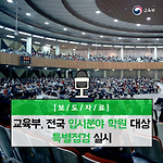 교육부, 전국 입시분야 학원 대상 특별점검 실시 - 대입 전형기간에 맞춰 학원 허위․과장 광고 및 교습비 초과 중점단속 - 교육부는 17개 시․도교육청과 함께 12월 11일(월)부터 1월 30일(화)까지 전국 입시학원을 대상으로 허위․과장광고 및 교습비 초과징수 여부에 대해 특별점검을 한다고 밝혔습니다! 이번 특별점검 대상 학원은 미술․음악 등 입시예능학원, 입시컨설팅학원, 재수생 전문 학원으로, 허위․과장광고와 교습비 초과징수 여부에 대해 중점 점검할 계획인데요. 입시예능학원의 경우 수능 이후 집중적으로 운영하는 특강과 관련하여, 교습비 초과징수 여부를 자세히 살피고, 입시예능학원 분야에 광범위하게 퍼져있는 대학진학 실적과 관련하여서도 허위․과장여부에 대해 집중적으로 점검할 계획입니다. 입시 컨설팅 학..