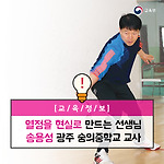 스포츠면 ‘스포츠’, 봉사면 ‘봉사’ 열정을 현실로 만드는 선생님 - 송용성 광주 숭의중학교 교사 - 지난 10월 30일, 광주광역시 숭의중학교(교장 김호중)에 스쿼시팀이 창단됐다. 중학교로서는 전국에서 최초의 팀 창단이다. 지난 3년 동안 이 종목의 팀 창단을 위해 애써온 송용성(52) 체육교사의 땀이 결실을 맺은 것이다. “스쿼시는 아직까지 전국소년체전에서 치러지는 경기 종목은 아닙니다. 그렇다 보니 많은 학교에서 이 종목의 팀 창단에 소극적일 수밖에 없었어요.” 그런데 요즘 학생들은 체육활동에서도 좀 더 새로운 것을 추구하고 싶어 한다는 게 송 교사의 설명이다. 송 교사는 학생들의 즐거운 체육시간을 위해 플로어볼, 추크볼 등 새로운 종목들을 꾸준히 수업에 적용시켜왔다. 스쿼시팀 창단에 앞서서는 학교..