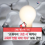 “교과서서 ‘고은 시’빠지나 교육부 현황 파악 착수” 보도 관련 2월 20일 EBS를 통해 “교과서서 ‘고은 시’ 빠지나 교육부 현황 파악 착수”라는 제목의 기사가, 2월 21일 서울경제를 통해 “성추문 고은 시, 교과서에서 사라질까 검토 착수”라는 제목의 기사가 보도됐습니다. / 관련 보도 내용 해당 기사는 교육부가 중등 국어 교과서의 고은 시 작품의 삭제, 수정 논의 계획이 있다는 내용이었습니다. / 해명 내용 이에 대한 교육부의 해명은 다음과 같습니다. 교육부가 작품 삭제까지 포함된 수정 논의 계획이 있다는 보도내용은 사실과 다릅니다. 중학교, 고등학교의 국어교과서는 검정도서로, 수정․보완 권한이 발행사와 저작자에게 있으며, 향후 발행사 혹은 저작자의 수정․보완 요청이 있는 경우, 교과서 상시 수정..