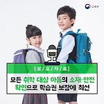 모든 취학 대상 아동의 소재·안전 확인으로 학습권 보장에 최선 - 취학 대상 아동에 대하여 취학전 단계부터 예년보다 신속하게 소재와 안전을 확인 - 교육부는 경찰청과 함께 초등학교 취학 대상 아동에 대하여 예비소집 단계부터 시·도교육청, 지자체 등과 합동으로 소재와 안전을 집중점검하고 있다고 밝혔습니다. 올해 초등학교 취학 대상 아동 예비소집은 시·도교육청별로 2017년 12월 29일부터 2018년 1월 12일까지 실시되었습니다. ※ 전국 예비소집 최종일을 전년대비 8일 앞당겨 실시 : 1월20일(2017년) → 1월12일(2018년) 예비소집을 통해 소재․안전이 확인되지 않은 아동에 대해서는 학교장이 읍·면·동장과 협력하여 주민등록전산정보자료 및 출입국 사실 확인, 가정방문, 내교요청을 통한 면담 등을..