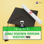 2018년 학점은행제·독학학위제 학위수여식 개최 - 2만 5천여 명의 성인학습자 ‘교육부장관 명의 학위’ 취득 - 교육부와 국가평생교육진흥원은 2018. 2. 22(목) 11:00, 더케이호텔서울에서 "2018년 학점은행제․독학학위제 학위수여식"을 개최하였습니다. 이번 행사는 학점은행제와 독학학위제를 통해 교육부장관 명의의 학위를 취득한 2만 5천여 명(학점은행제 학사‧전문학사 24,995명, 독학학위제 학사 887명)에 대한 격려와 함께 학습 성과를 공유하는 자리입니다. 이날 국회 교육문화체육관광위원회 유성엽 위원장, 윤여각 국가평생교육진흥원 원장 등 내․외빈과 학습자, 가족 및 친지 등 1천 5백여 명이 참석하여 학위를 수여받은 학습자들을 축하하였습니다. 이번 학위수여식에서는 학점은행제를 통한 학사‧..