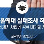 "27~29일 사흘간, 문제제기 사안에 적극 대처할 계획입니다." 교육부(부총리 겸 교육부장관 김상곤)는 입학전형료 및 국고지원금 부당 집행, 교원 인사 부적정, 성추행 피해 학생 협박 등 문제가 제기되고 있는 ‘서울예술대학교’에 대해 ’18년 3월 27일(화)부터 29일(목)까지 3일간 실태조사를 실시한다고 밝혔습니다. 이번 실태조사는 동 대학의 운영 상 문제 제기가 계속 확산되면서 학생들의 총장 퇴진 운동으로 이어지고 있어 적극적인 대처 및 조속한 조치가 필요하다는 판단에 따른 것입니다. 교육부 및 한국연구재단 직원 등 7명 내외로 구성된 조사단이 국고지원금 및 교비 부당 집행 관련 사안을 조사하고, ‘미투’ 관련 교원에 대한 인사 조치사항 및 피해자 보호 문제 등도 함께 확인할 계획입니다.