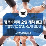 교육부(부총리 겸 교육부장관 김상곤)는 국민참여 정책숙려제 제1호 안건인 ‘학교생활기록부 신뢰도 제고 방안’ 마련을 위한 세부 운영 계획(이하 소통계획)을 발표했습니다. 현행 학교생활기록부의 일부 항목과 요소가 사교육을 부추기거나 학생과 학부모, 교사에게 부담을 주고 있다는 비판에 따라, 국민이 직접 ‘학교생활기록부 신뢰도 제고 방안’에 대한 권고안을 마련하여 교육부에 제안할 예정입니다. 국민 중 100명 내외를 무작위로 추출하여 구성한 시민정책참여단이 학습과 토론을 거쳐 권고안을 마련한 후 교육부에 제출하면 교육부는 그 결과를 존중하는 형태로 진행됩니다. 다만, 국민의 의견을 충실히 수렴하고 시민정책참여단의 심도 있는 논의를 지원하기 위해 교육정책 모니터링단 조사와 ‘온-교육’ 사이트를 통한 대국민 설..