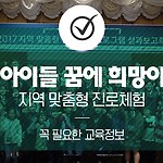 우리 아이들의 진로탐색을 위해 올 한해 전국에서 많은 분들이 힘을 모았습니다. 그 덕분에 많은 모범 사례들이 곳곳에서 생겨났는데요, 이들의 이야기를 함께 나누는 자리가 마련됐습니다. 교육부와 한국직업능력개발원은 ‘2017 지역 맞춤형 진로체험 프로그램’ 성과보고회를 지난 11월 30일 오전 9시 서울대학교 호암교수회관에서 개최했습니다. 지역 맞춤형 진로체험 프로그램은 17개 시·도 내 지자체 및 진로체험지원센터, 공공기관, 대학, 민간단체 등이 협력해 지역의 특화산업 관련 진로체험 프로그램을 개발·운영하는 사업으로, 올해 2년 차를 맞았습니다. 이번 성과보고회는 올해 지역 맞춤형 진로체험 프로그램 우수사례 공모전에 참여한 학생, 교사 및 컨소시엄(체험처) 부문 수상작들을 발표하고, 시·도별 프로그램을 벤..
