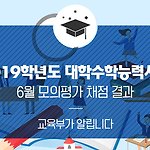 한국교육과정평가원은 지난 6월 7일(목) 전국적으로 실시된 2019학년도 대학수학능력시험(이하 수능) 6월 모의평가 채점 결과를 6월 28일(목)에 수험생들에게 통지했습니다. 개인별 성적통지표는 접수한 곳(재학 중인 학교, 시험 지구 교육청, 출신 학교 등)을 통하여 수험생에게 교부했습니다. 아울러 수험생 진학 지도를 위해 「영역/과목별 등급 구분 표준점수 및 도수분포」자료도 공개했습니다. 2019학년도 수능 6월 모의평가에 응시한 수험생은 520,740명으로 재학생은 454,505명, 졸업생은 66,235명이었습니다. 국어 영역 518,487명, 수학 가형 193,024명, 수학 나형 319,982명, 영어 영역 519,994명, 한국사 영역 520,740명, 사회탐구 영역 266,985명, 과학탐구 ..