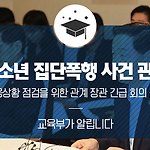 “형사 미성년자 연령 14세→13세 미만으로 하향” “유해 영상물에 대한 관리 및 인터넷․영상물 이해교육 강화” “청소년 폭력에 대한 종합적․체계적 예방 및 사후관리 강화” “가해학생․ 학부모 특별교육 시 개인상담 의무화” 김상곤 부총리 겸 교육부장관은 7. 12.(목) 오전 정부서울청사에서 ‘학교 안팎 청소년 폭력 예방대책’ 추진상황 점검을 위한 관계 장관 긴급 점검 회의를 개최하여, 대구와 서울에서 발생한 청소년 집단 폭행 사건에 대한 각 부처의 대응 상황을 확인하고, 지난해 12월 발표한 ‘학교 안팎 청소년 폭력 예방 대책’ 추진 현황을 점검했습니다. 회의에 참석한 장관들은 피해 학생과 가족의 빠른 회복을 기원하며 관계부처의 긴밀한 협력 하에 청소년 폭력 예방 보완 대책을 조속히 마련하기로 했습니다..
